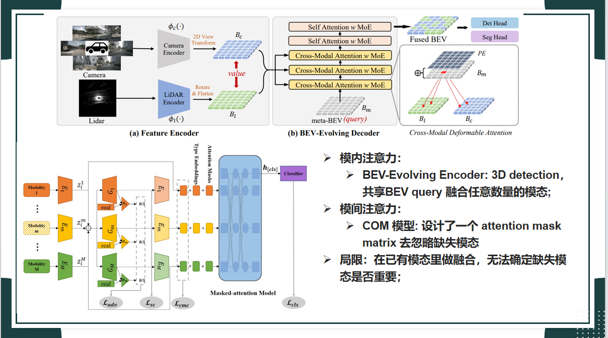 (1) BEV-Evolving Decoder [36]:用于 3D detection,在传感器故障或某些传感器缺失时,通过共享同一个 BEV query 给不同模态的 attention 模块,让系统能融合任意数量的模态。