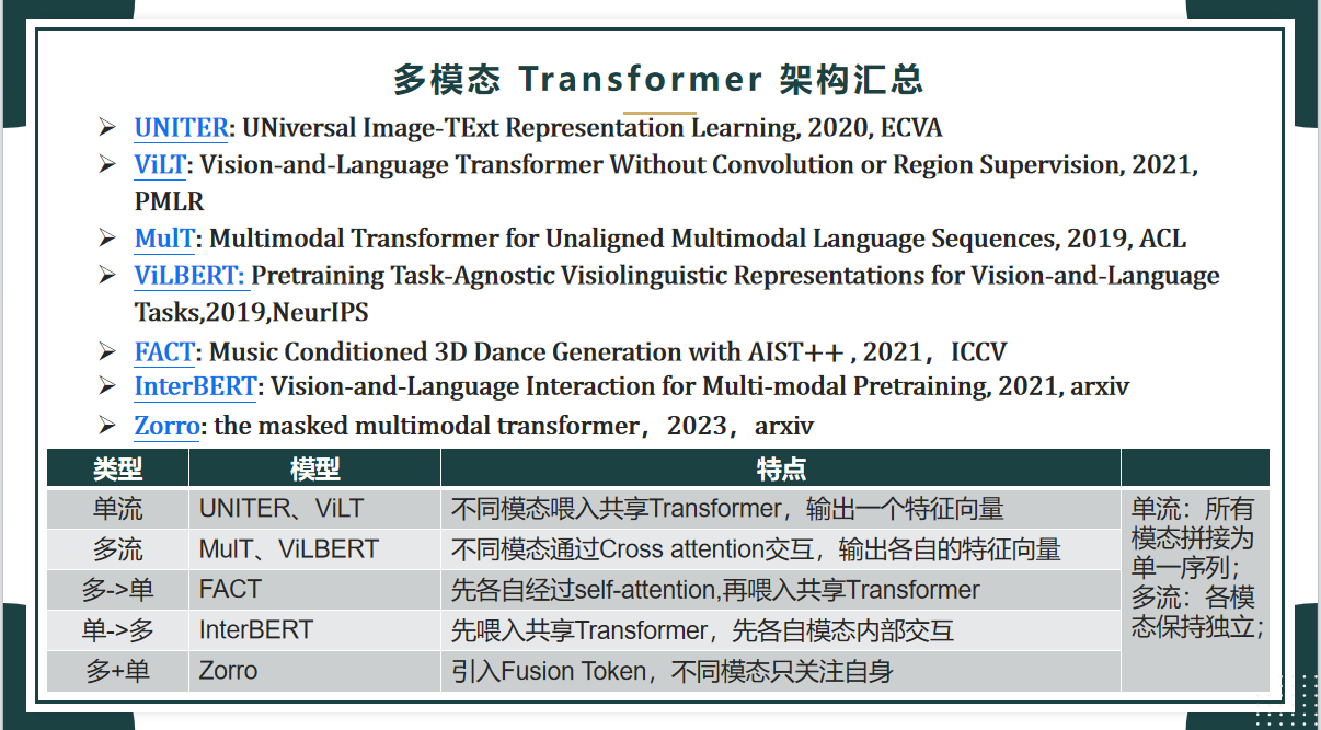 - Ma 等人 [110] 在多模态 Transformer 中提出了一种优化融合策略搜索方法,帮助找到适合不同缺失/完整模态表示的最佳融合方法。